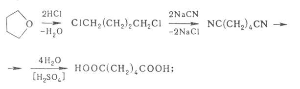 г) карбонилированием ТГФ в ангидрид адипиновой кислоты, из которого действием Н>2>О получают кислоту.
