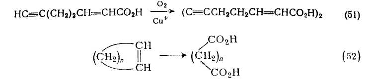 Ацетиленовые кислоты и их эфиры с высоким выходом подвергаются окислительной димеризации в водном этаноле под действием кислорода или воздуха в присутствии хлорида аммония или меди. Эта реакция использована в синтезе кортикроцина контроль за реакцией, которая шла в этом случае с почти количественным выходом при комнатной температуре, осуществлялся по поглощению кислорода {схема (51)}.