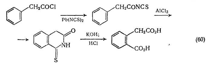 Хотя обычно амиды получают из карбоновых кислот и нитрилов, тиогомофталимиды легко получают из хлорангидридов арил-уксусных кислот [55]. Последующий гидролиз тиогомофталимидов служит удобным методом синтеза гомофталевых кислот {схема (60)}.