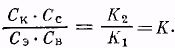 В состоянии равновесия скорости реакций, протекающих в противоположных направлениях, равны, т. е. V>1> = V>2>. Тогда К>1>С>к>С>с> = К>г>С>э>С>в> или: