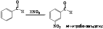 Альдегиды нитруются при охлаждении концентрированной HNO3 или нитрующей смесью с образованием преимущественно м-нитропроизводных. Так, например, при действии на бензальдегид нитрующей смесью при 5-10°С получается м-нитробензальдегид с выходом около 80% наряду с небольшим количеством орто-изомера. Практически свободный от изомеров м-нитробензальдегид получают действием нитрующей смеси на гидробензамидин.