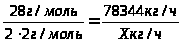78344 кг/ч – расход СО, 9950 кг/ч – расход водорода на целевую реакцию (1).