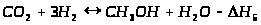 а также продукционная реакция образования метанола из содержащегося в синтез-газе диоксида углерода: