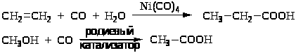 2. Синтезы на основе оксида углерода (II). Карбоновые кислоты получают на основе оксида углерода по реакции карбонилирования: