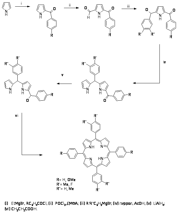 синтез функциональных порфиринов из заранее полученных незамещенных порфиринов.