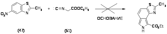 Также были предприняты попытки синтеза пирролов, конденсированных с гетероароматическими и гетероциклическими системами, однако нитротиофен, нитрофуран и нитропиридин дали в качестве продуктов смолу, хотя 4-нитро-2,1,3-бензотиадиазол при конденсации с изоцианоацетатом дает в качестве одного из продуктов соответствующий пиррол [21].