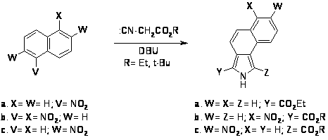 В последние годы, в связи с необходимостью введения в порфириновый макроцикл сложных ароматических систем, таких как фенантрен или фенантролин , нафталин и аценафталин, бензол [7,20,21], а также ацетали нитроацетальдегида [22] был разработан синтез пирролов, конденсированных по положениям с выше указанными ароматическими системами на основе метода Бартона Зарда, которые показали, что нитроалкены способны при конденсации с изоцианоацетатами в присутствии ненуклеофильного основания давать пиррол-2-карбоксилаты. Хотя сам нитробензол не реагирует таким образом, другие нитроарены с большим числом двойных связей конденсируются с изоцианоацетатами, давая соответствующие пирролы с хорошим выходом до 50%.