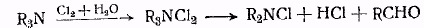 Диалкилариламины лучше всего реагируют с тетранитрометаном в присутствии пиридина, а алифатические амины — в уксусной кислоте. Общие условия расщепления диалкилариламинов по этому способу заключаются. Другой, менее общий способ расщепления аминов, основан на действии хлорноватистой кислоты или хлора на водный раствор алифатического третичного амина или циклического амина, например тропидина.