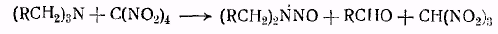 Другой тип расщепления наблюдается при действии тетранитрометана на третичные амины, причем образуются соответственные нитрозамины.