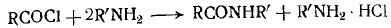 Отделение солянокислой соли от ацилированного производного амина основано на их различной растворимости. Обычно реакцию ведут в таком растворителе, в котором соль амина нерастворима. Кроме того, если ацилированный амин нерастворим в воде, солянокислую соль легко удалить промыванием реакционной смеси водой
