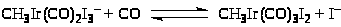 Усовершенствование процесса при переходе к комплексам Ir (“Cativa”-процесс, BP и “Monsanto”) связано с тем, что аналогичный Rh(I) комплекс Ir [Ir(CO)2I2–] более устойчив в широком диапазоне РСО и [Н2О]. Так, комплекс устойчив при ~0.5% концентрации Н2О в отличие от комплекса Rh (> 8% H3O). Показано, что скорость присоединения CH3I к Ir(I) ~ в 150 раз выше, чем в случае Rh(I) (стадия 18), и не лимитирует процесс. Медленной стадией в этой системе считают реакцию (26) внедрения СО в метильном комплексе Ir(III), следующую за стадией замещения I– (25)