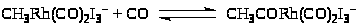 В процессе фирмы “Monsanto” активным катализатором является комплекс Rh(CO)2I2–, а в процессе фирмы “Cativa” – Ir(CO)2I2–. Основные стадии процесса в случае комплексов родия: