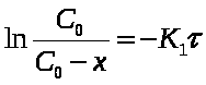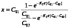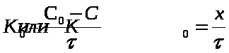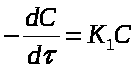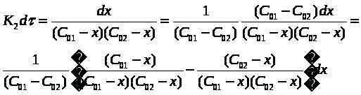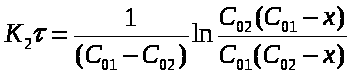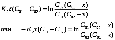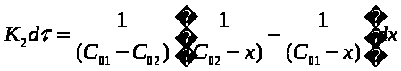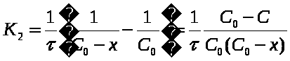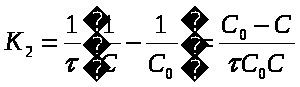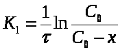 После разделения переменных и интегрирования уравнения в пределах от 0 до х и от 0 до τ можно получить выражение для константы скорости реакции