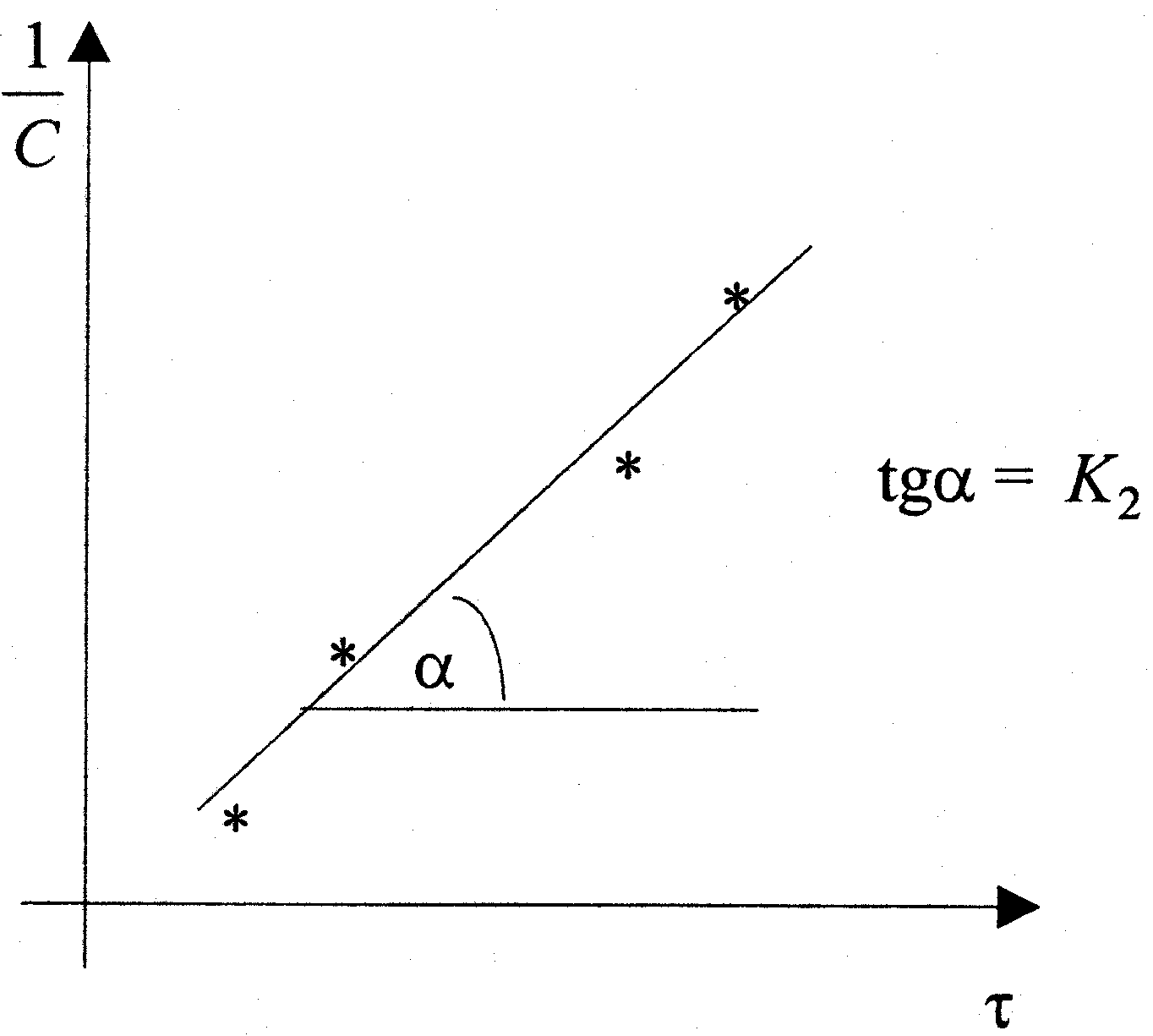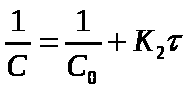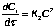 Подстановкой в эти уравнения опытных значений концентраций С исследуемого вещества, в разные моменты времени протекания реакции, вычисляют значения К. Если расчетные К, например, по уравнению (31) остаются постоянными, то это означает, что порядок реакции по веществу равен двум.