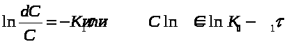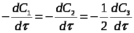 Проинтегрируем уравнение (29) в пределах от 0 до τ и от С>0> до С при п = 1, 2, 3, при этом получим: