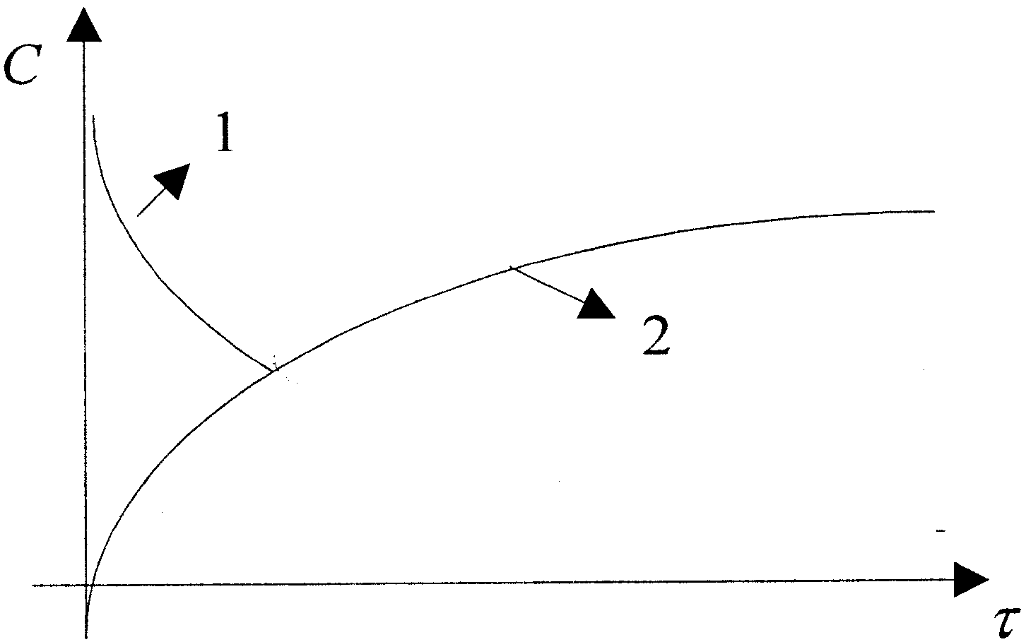 Графическое представление изменения концентрации компонента реакции с течением времени в координатах С>i> - и называют кинетической кривой. Кинетические кривые для исходных веществ и продуктов имеют вид (рисунок 1):