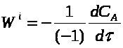 Скоростью образования (расходования) количества данного i-того вещества (компонента) во время химической реакции или скоростью реакции Wi по данному i-тому веществу называется изменение количества этого вещества n>i> (в молях) в единицу времени т в единице реакционного пространства R:
