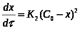 Если для реакции третьего порядка использовать величину х, то уравнение для скорости реакции приобретет вид: