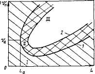 На рис.14, б дается схема формования в мягкие ванны. Критерием начала мягких ванн является упоминавшееся соотношение С>о> < 2С>к>, т.е. концентрация осадителя в ванне должна быть меньше двух критических концентраций. В этом случае, как указывалось ранее, на поверхности волокна устанавливается концентрация ниже С>к>, и граничная линия критических концентраций (кривая 2) начинается спустя некоторый промежуток времени, необходимый для накопления осадителя на поверхности до концентрации С>К>. В результате на формующемся волокне образуется жидкий участок l. Метастабильная область, расположенная между кривыми 1 и 2, значительно больше, чем при формовании в жесткие ванны В большей мере, как это показано на рисунке, реализуется возникновение зародышей, что приводит к образованию мелкофибриллярной структуры и улучшению всего комплекса физико-механических свойств волокна [16].
