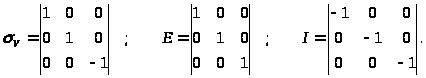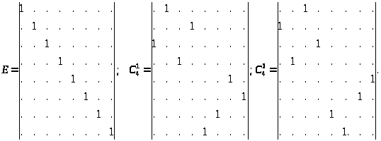 Так, в частности, операция отражения в плоскости >z>, операция идентичности Е и инверсии I в начале координат будут иметь вид:
