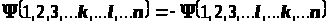 Полная волновая функция, коллектива идентичных фермионов антисимметрична относительно перестановки любой пары частиц между их индивидуальными одночастичными состояниями.