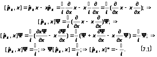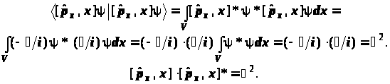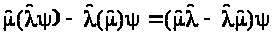 Две эти разные последовательности измерений двух величин порождают два конечных результата B и D. В общем случае они могут не совпадать, но не исключён и нулевой результат. Составим их разность, и соберём все операторы слева от символа преобразуемой волновой функции, используя свойство ассоциативности эрмитовых операторов: