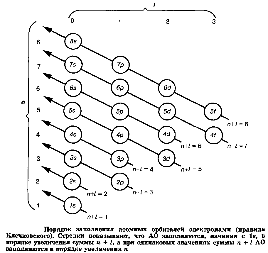 АО заполняются в порядке увеличения суммы п + I. При одинаковых значениях суммы п + I АО заполняются в порядке увеличения п.