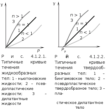 При n = 1 (рис. 4.1.2.2) – бингамовское тело; n > 1 – пластическое дилатантное тело; n < 1 – псевдопластическое твердообразное тело.