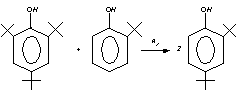 При исчерпывающем жидкофазном алкилировании фенола изобутиленом получена реакционная масса, состав которой определяется равновесием реакций позиционной изомеризации и переалкилирования в системе, представленной фенолом, 2-ТБФ, 1,4-диТБФ, 2,6-диТБФ, 2,4,6-триТБФ.