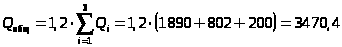 Q = S · h · q = 3 · 18 · 35 =1890 Вт,