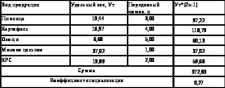 Коэффициент специализации характеризует уровень специализации хозяйства и рассчитывается по формуле: