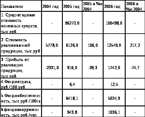 В течение трех лет показатели постепенно увеличиваются. Только показатель фондообеспеченности в 2006 году по сравнению с 2005 годом снизился за счет увеличения площади. Рост показателей связан с ростом и развитием, расширением мощностей производства, увеличением валового дохода. Стоимость основных средств в 2006 году увеличивается по отношению к 2005 году. Увеличение стоимости реализованной продукции в 2006 году составляет 50 % к 2005 году, что больше чем в предыдущем году. Та же тенденция прослеживается в увеличении прибыли от реализации продукции и фондоотдаче.