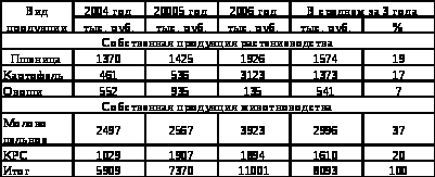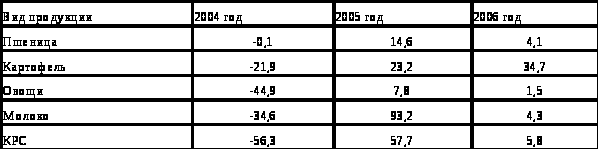 Выход продукции растениеводства с 2004 по 2006 год практически по всем культурам существенно увеличивается. Данное увеличение связано прежде всего с увеличением площади, а так же с ростом урожайности, особенно в 2006 году