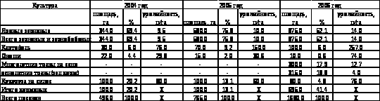 Таблица 5 - Структура посевных площадей и урожайность сельскохозяйственных культур