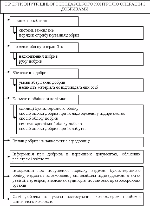 Рис.10. Об’єкти внутрішньогосподарського контролю операцій з добривами