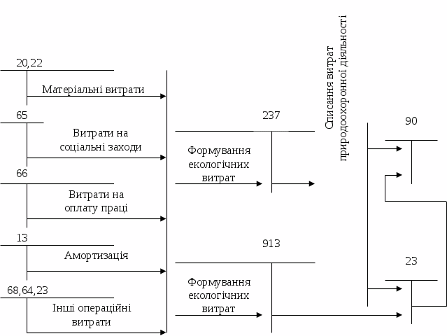 Рис. 9. Схема обліку витрат природоохоронної діяльності з використанням субрахунків 237 та 913