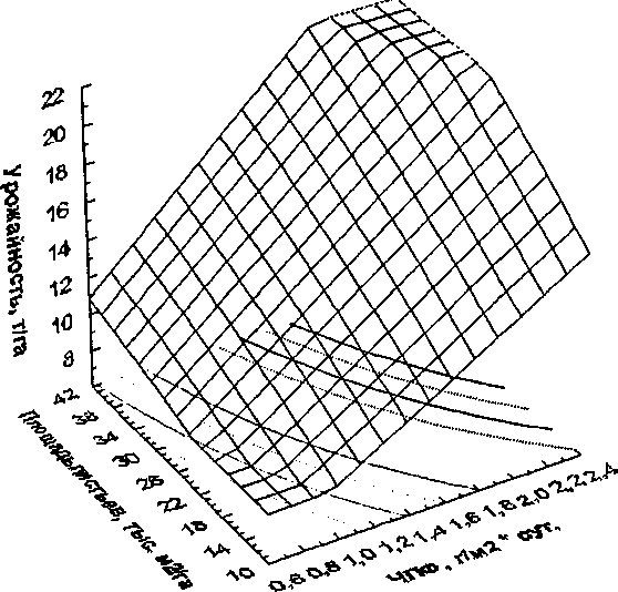 где У – обеспеченность кормовой единицы переваримым протеином, г, Yi – сахаропротеиновое отношение, У>2> – обеспеченность МДж энергии переваримым протеином, г, х – количество бобового компонента, тыс. шт./га.