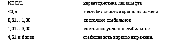 Рассматривая вопросы устойчивости и оптимизации ландшафтов, очень важно располагать системой количественных оценок и характеристик изучаемых процессов. Оценивать степень экологической устойчивости ландшафта необходимо с помощью коэффициента экологической стабилизации (КЭСЛ), интегрирующего качественные и количественные характеристики абиотических и биотических элементов ландшафта.