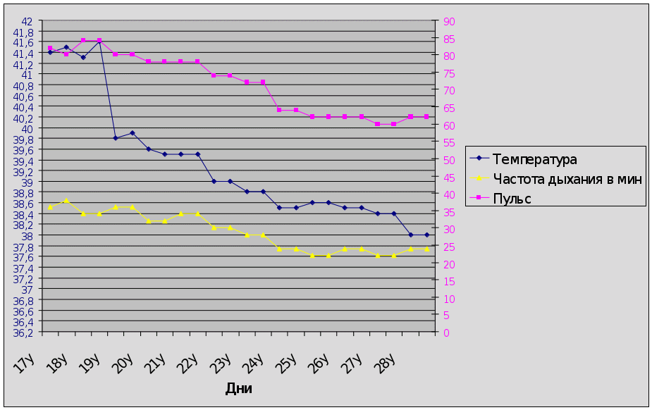 3. Спринцевание матки фурациллином 1:5000. 4. В полость матки ввели 3 свечи с фурагином. Rp: Furasgini suppos. vaginalis – 1.0 D.t.d. №28 S. внутриматочно, по 3 суппозитория на 1 введение. 5. Внутримышечно бициллин-3. Rp.: Bicillini-3 - 1200000 ED D. S. Внутримышечно; на одно введение. |