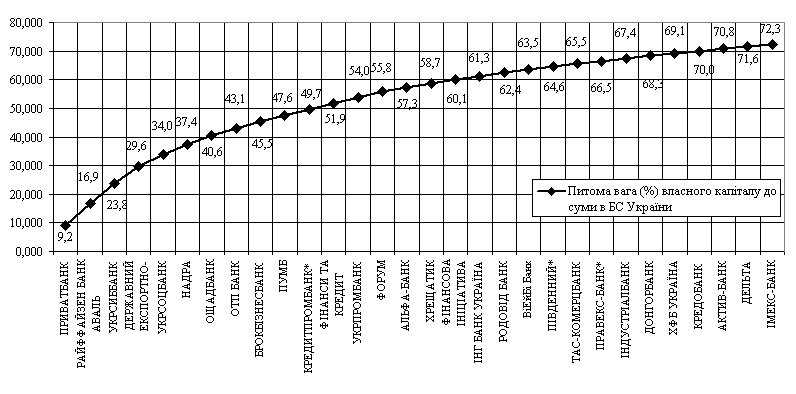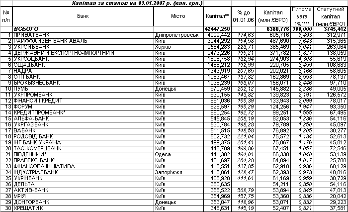Таблица Б.3 Власний капитал перших 30 банківських установУкраїни станом на 01.01.2006 року [37]
