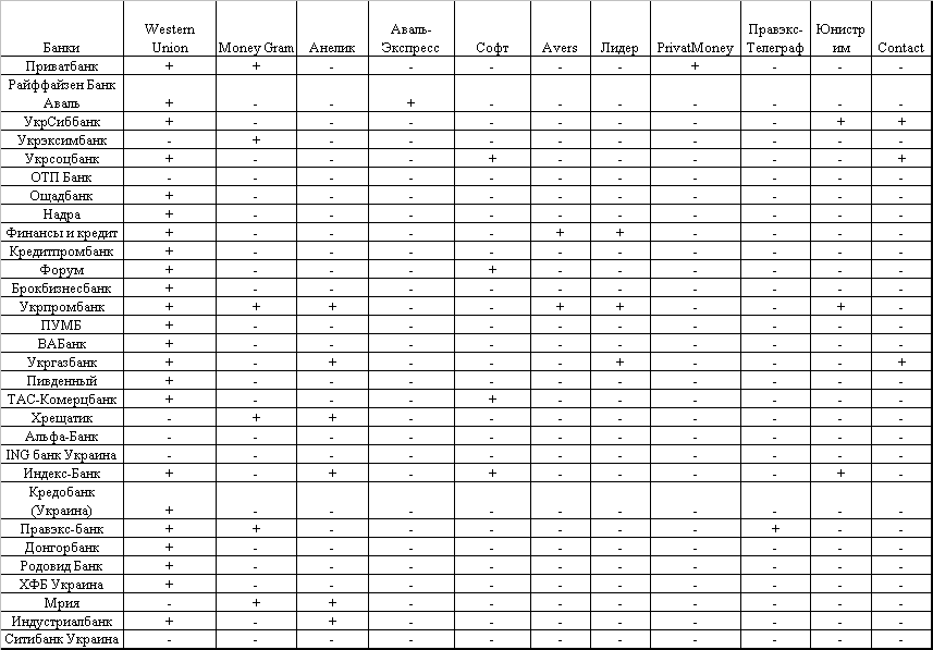 Таблиця Г.1 Наявність систем банківських переводів коштів фізичних осіб в комерційних банках України (конкурентне середовище)