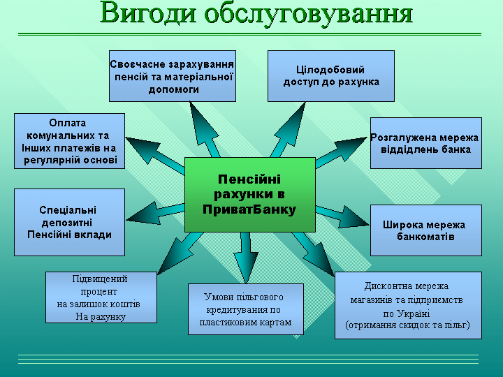 Грошовий потік коштів Пенсійного фонду та фондів соціального страхування в Україні у 2005 році становив біля 73,0 млрд.грн., тобто займав частку у 24% у сумарних державних фінансах України або 17,5% від рівня ВВП України у 2005 році. Банківське обслуговування такого грошового потоку потребує спеціальних банківських соціально-орієнтованих продуктів та територіального розвитку відділень банківської мережі.