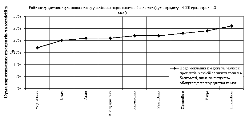 Рис.Г.23 – Конкурентне позиціонування пропозицій АКБ “Приватбанк” в сегменті беззаставних кредитів на покупку товарів фізичними особами в гривнях з застосуванням авансової видачі кредитної картки з лімітом
