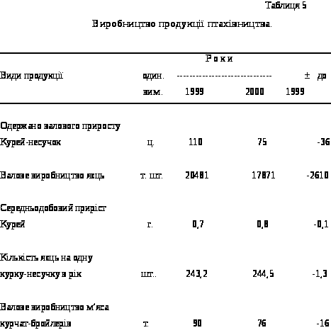 Так для ВАТ птахофабрика "Ражнівська" цей показник становив: