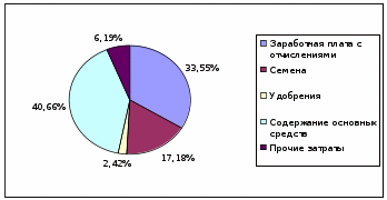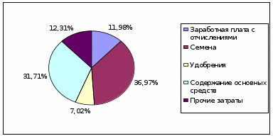 Основной удельный вес в себестоимости зерна занимают затраты на заработную плату, на содержание основных средств, на семена и посадочный материал.