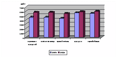 Расчеты показали, что для намеченного подъема животноводства и создания рациональной кормовой базы необходима реальная перестройка структуры зерновых посевов края в сторону увеличения в них зернофуражных высокобелковых культур и сокращения посевов продовольственных при росте валовых сборов зерна в целом. Одновременно площади под зернофуражными культурами предлагается увеличить с 443 до 598 тыс. га. При обоснованном росте урожайности с 27,6 до 28,4 ц / га валовые сборы этих культур могут достичь 1695 тыс. т.