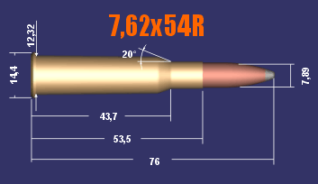 7,62x54R, вес пули - 13 грамм, Новосибирский завод