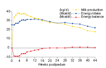 Может ли корова соответствовать этим требованиям? Давайте обсудим, что происходит в период стельности и лактации с биологической точки зрения. В течение стельности и лактации животное находится в исключительной физиологической ситуации. В период стельности зародыш должен быть обеспечен питательными веществами, необходимыми для развития и роста для последующего рождения на свет, и поэтому в период лактации самка должна производить много молока для вскармливания детеныша. Для решения этой задачи самка начинает потреблять больше пищи, меняет метаболизм/процесс переваривания и начинает накапливать резервы (жировую ткань). Пищеварительный тракт увеличивается в размерах и его функции оптимизируются. В период лактации животное продолжает потреблять больше калорийной пищи и зачастую даже значительно увеличивает свой рацион в течение всего этого периода. Животное начинает использовать резервы, накопленные в период стельности, и метаболизм меняется таким образом, что запасенные резервы организма мобилизуются для производства энергии, необходимой для выработки молока.