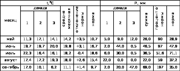 Метеорологические условия оказывают существенное влияние на урожайность и качество возделываемых культур, на результаты деятельности сельскохозяйственных предприятий и на уровень удовлетворения потребностей общества в продуктах питания.