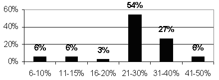 Рисунок 2.3 - Процентні ставки у 2004 році (відсоток тих, хто отримав кредити за такими ставками до загальної кількості тих, хто отримав кредит)